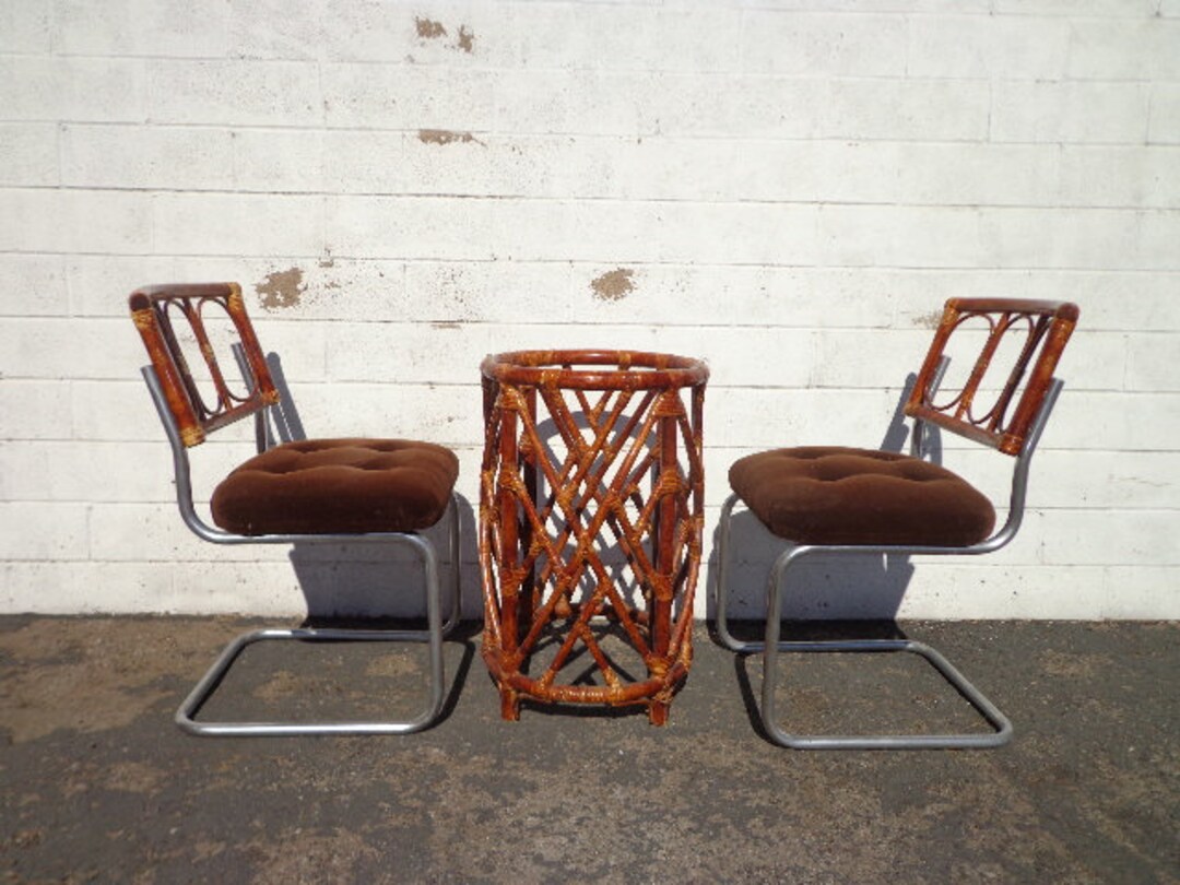 3pc Vintage Rattan Dining Set Boho Chic Wood Table Base 2 Etsy De